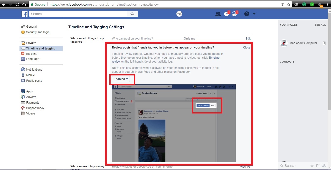 Part 2 How To Setup Your Facebook Privacy Setting Advanced Tutorial Mad About Computer - Slide the timeline review switch to on position.