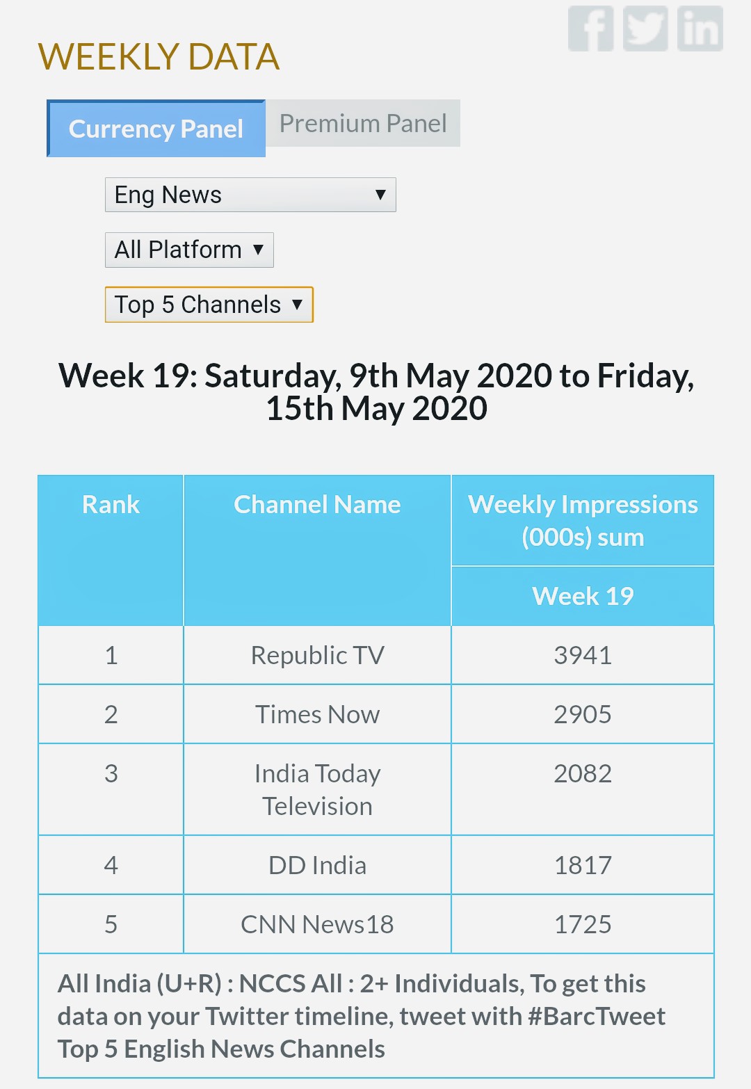 Kiran Kumar S On Twitter See Who Is Missing In The Top Five English News Channels List Of India Barc - It's top trp shows including debate, news and headlines are 'aar paar', 'kattcha chitta'.