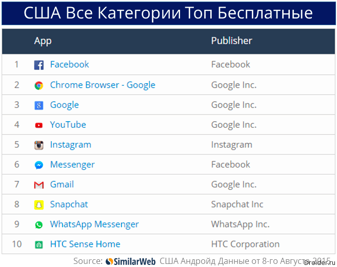 8 Of The Top 10 Most Used Apps In The Us Owned By Facebook Google 2017 Comscore - Country, category and leader board updated daily.