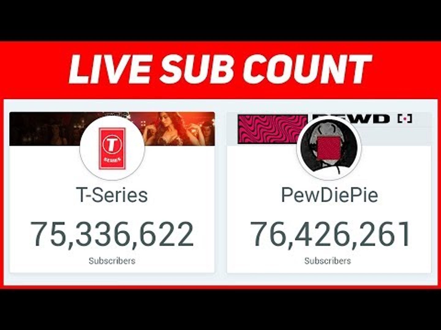 T Series Vs Pewdiepie Sub Count Live T Series Vs Pewdiepie Sub Count Live : To get the live sub count of a particular youtube channel, type the name of the channel in the search field.